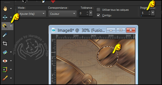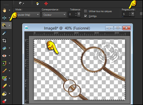 -- 26 -- Activer le calque "Fusionné". Outil Baguette Magique > sélectionner les côtés du petits cercles: