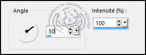-- 05 -- Réglage > Flou > Flou de mouvement > Angle: 50 - Intensité: 100 Édition > Répéter Flou de mouvement. Édition > Répéter Flou de mouvement.