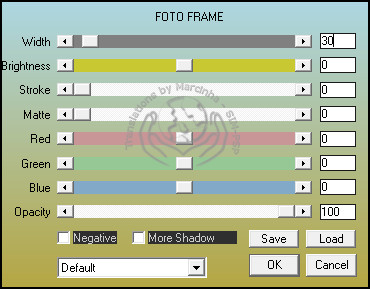 -- 32 -- Sélections > Sélectionner tout. Sélections > Modifier > Contracter: 50. Appuyer une fois sur la touche DELETE du clavier. Sélections > Inverser. Calques > Fusionner > Fusionner le calque de dessous. Effets > Modules externes > AAA Frames > Foto Frame.