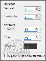 -- 17 -- Image > Redimensionner: 80% - décocher "Redimensionner tous les calques". Réglage > Netteté > Netteté. Effets > Effets 3D > Ombre portée:
