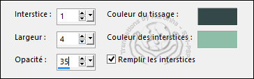 -- 06 -- Effets > Effets de Textures > Textile. Couleur du tissage: premier plan: #038fb3Couleur des interstices: l'arrière-plan: #8ebea8