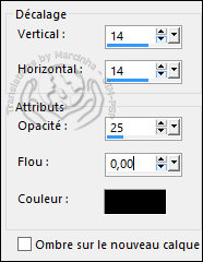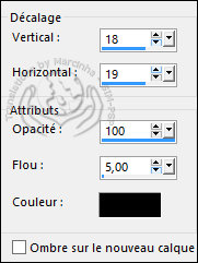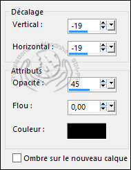 Effets > Effets 3D > Ombre portée: -19/-19/45/0/Couleur: #000000