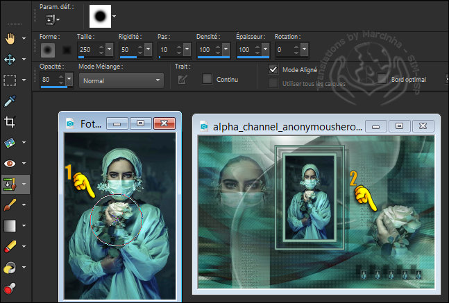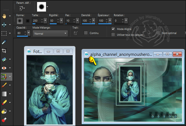 -- 23 -- Édition > Copier le anonymouscore_byxiki. Édition > Coller comme nouveau calque. Outil Sélecteur: Position horiz: 8,00 et Position vert: 31 Calques > Propriétés > Général > Opacité: 80%