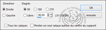 -- 12 -- Activer et Ouvrir > la visibilité calque "Copie de Raster 2". Image > Rotation Libre: Droite/90, décocher "tous les calques".