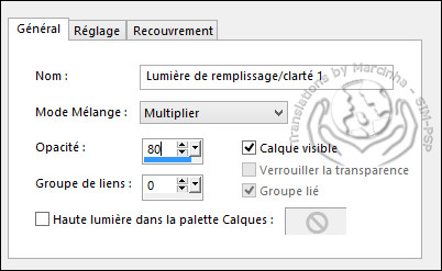 -- 21 -- Calques > Nouveau calque de réglage > Lumièri de remplissage/clarté: Mode Mélange: Multiplier Opacité: 80 (ou à votre choix)