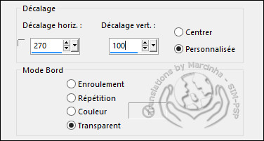 -- 24 -- Édition > Copier le 3_deco_Animabelle.png. Édition > Coller comme nouveau calque. Image > Redimensionner: 40% - décocher "Redimensionner tous les calques". Image > Retourner > Renverser verticalement. Effets > Effets d'image > Décalage: