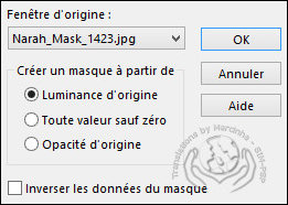 -- 13 -- Activer la visibilité calque "Copie de Raster 2" Calques > Nouveau calque raster. Le remplir avec la couleur #FFFFFF. Calques > Nouveau calque de masque > A partir d'une image > Narah_Mask_1423.