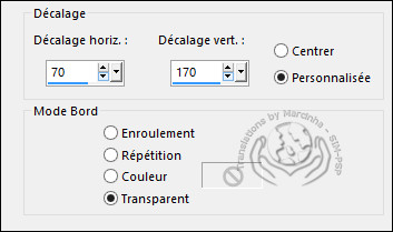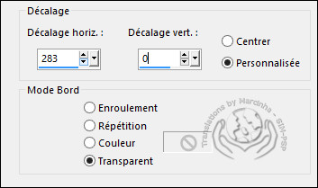 -- 23 -- Édition > Copier le decor1_evasion_byxiki. Édition > Coller comme nouveau calque. Effets > Effets d'image > Décalage: