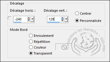 -- 24 -- Édition > Copier en decor_maryse_bysoxikibem.Édition > Coller comme nouveau calque. Effets > Effets d'image > Décalage: