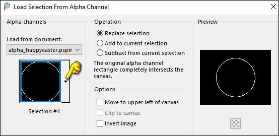 25 - Layers > New Raster Layer. Selections > Load/Save Selections > Load Selection from Alpha Channel: Selection #4