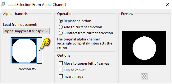 27 - Layers > New Raster Layer. Selections > Load/Save Selections > Load Selection from Alpha Channel: Selection #5