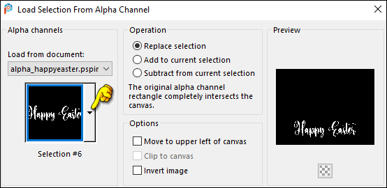 32 - Layers > New Raster Layer. Selections > Load/Save Selections > Load Selection from Alpha Channel: Selection #6