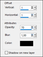 36 - Effects > 3D Effects > Drop Shadow: 1 / 1 / 70 / 1, color #000000