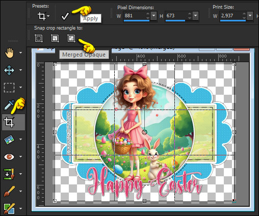 39 - Layers > Merge > Merge Visible. Ative a ferramenta Crop Tool > Merge Opaque e em seguida clique em Apply.