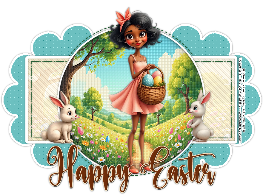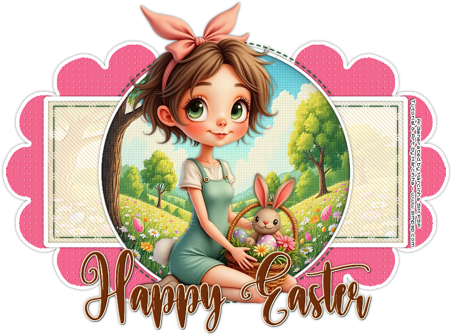 31 - Ative o arquivo 010_TubeIA_PersonagemPascoa. Edit > Copy. Volte ao trabalho... Edit > Paste as New Layer. Image > Resize de 58%, se estiver usando o tube do material. Adjust > Sharpness >