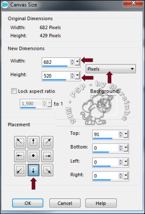 2 Clique na layer Raster 1 e vá em Image > Canvas Size e configure conforme o print: