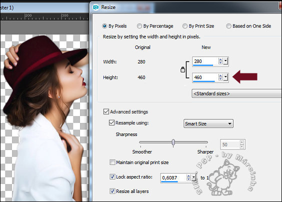 19 - Clique na imagem do tube e dê um resize de 460px height (altura). Edit Copy.