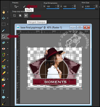 31- Clique na Ferramenta Crop Tool > Merged Opaque > Apply.