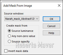 25- Layers > New Raster Layer Pinte a layer com a cor #ffffff (branco) Layers > New mask layer > From image >Narah_mask_Abstract129