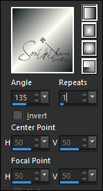 2 - Open a 900 x 550 px transparent image. Paint with the Linear gradient, Angle 135, Repeats 1.