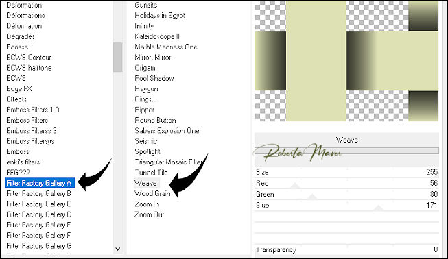 5 - Effects > Plugin Filter Factory Gallery A > Weave: