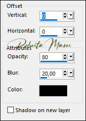 28 - Effects > 3D Effects > Drop Shadow: 0, 0, 100, 40, Cor: #000000, Shadow on new layer (desmarcado) Selections > Select None.