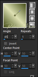 Pintar com o gradiente Linear, Angle 45, Repeats 1. formado pelas cores em uso.