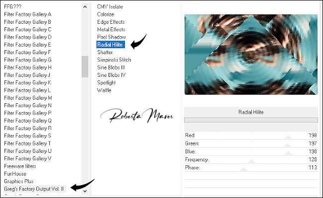 15- Effects > Filters Unlimited 2.0 > Greg's Factory Output > Radial Hilte