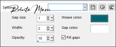 24 - Effects > Texture Effects > Weave. Weave color: #026471 (Foreground) - Gap color: #FFFFFF