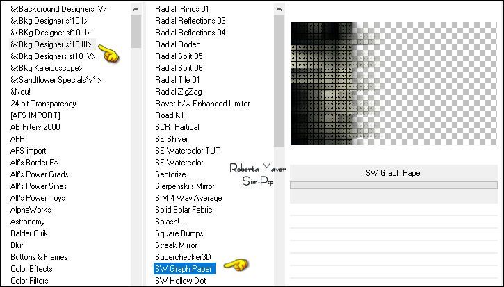 7 - Effects > Plugins > Filters Unlimited 2.0 >Bkg Designer sf 10III > SW Graph Paper: