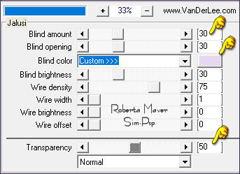 8 - Effects > Texture Effects > Blinds: Color: Background #43335a