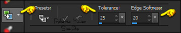 Com a ferramenta Magic Wand: Tolerance 0, Feather 70, Layers > Arrange > Bring to Top. Abrir a visibilidade das layers Raster 3 e Raster 2.