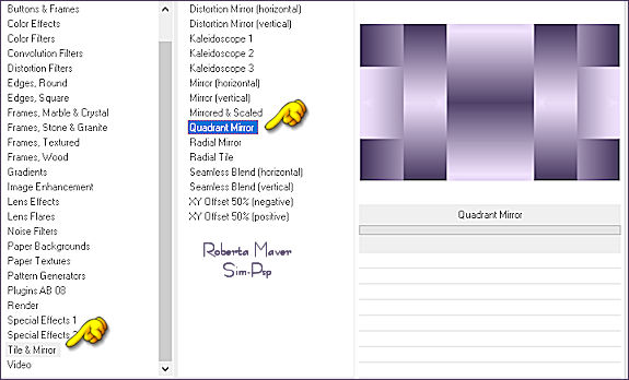 Tile & Mirror > Quadrat Mirror RCS Filters Pak 1.0 > RCS TripleExposure Mock> Windo Xero > Fritillary Mura's Meister > Perspective Tiling VanderLee > Unplugged X > Jalusi