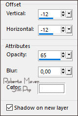 19 - Effects > 3D Effects > Drop Shadow > Shadow on new layer marcado