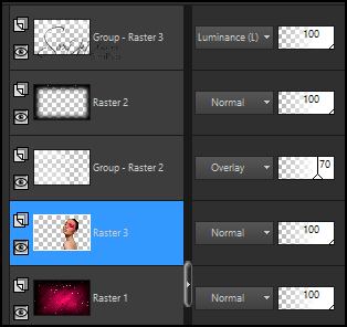 5 - Layers > New Raster Layer. Pintar esta layer com a cor branca. Layers > New Mask Layer > From Image: NarahsMasks_1618. Effects > Edge Effects > Enhance. Layers > merge > Merge Group. Layers > Properties: Blend Mode Overlay, Opacity 70%.