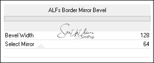 3 - Adjust > Blur > Gaussian Blur: 15 Layers > Duplicate. Filters Unlimited 2.0 > Bkg Designer SF10I > ALFs Border Mirror Bevel: Default.