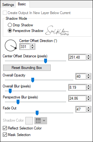 17 - Plugin Alien Skin Eye Candy 5 > Impact: Perspective Shadow. Escolha o preset Perfectharmony-coly ou aplique como abaixo.