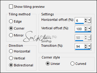 10 - Image > Resize: 50%, all layers desmarcado. Effects > Image Effects > Seamless Tiling: Side by Side. Layers > Duplicate. Layers > Properties: Opacity 50%. Layers > Merge > Merge Down. Layers > Properties: Blend Mode Luminence (Legacy).