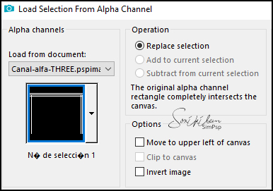 9 - Selections > Load/Save Selections > Load Selection From Alpha Channel: seleccion 1.