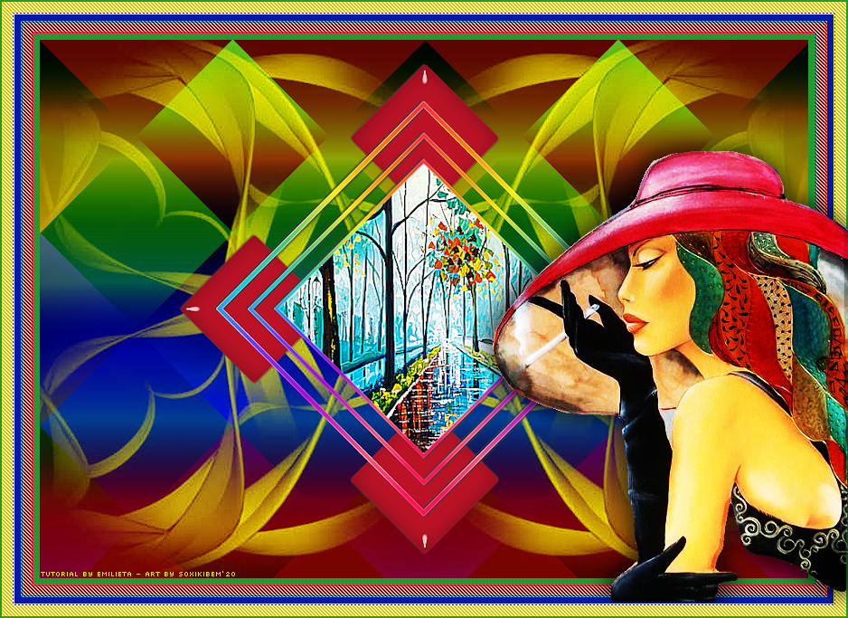 37 - Image > Add Borders: 7px, color #239a2d Image > Add Borders: 14px, color #c00000 Image > Add Borders: 7px, color #0119ab Image > Add Borders: 14px, color #f1e800 Image > Add Borders: 2px, color #239a2d