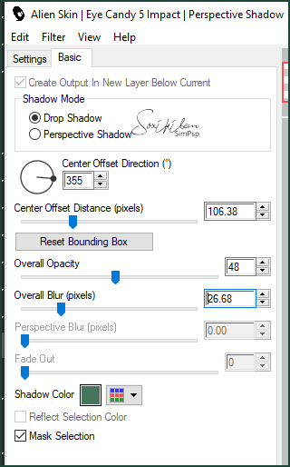 13. Plugin Alien Skin > Eye Candy > Impact > Perspective Shadow.