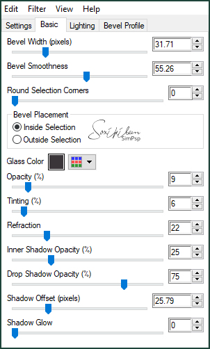 20. Plugin Alien Skin > Eye Candy > Impact > glass: glass_majo.f1s. Apply twice.