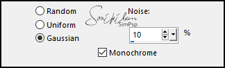 25 - Adjust > Add/Remove Noise > Add Noise: Uniform, 10%, Monochrome checked.