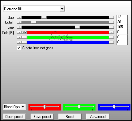 9 - Selections > Invert. Effects > Plugins > Filters Unlimited 2.0 > VM 1 > Web Weaver: