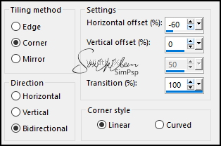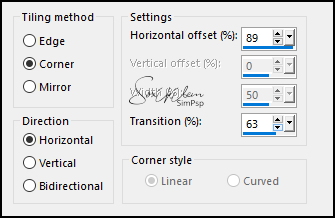 16 - Ativar a layer Copy of Merged. Effects > Plugins > Filters Unlimited 2.0 > Bkg Kaleidoscope > 4QFlip ZBottomR. Effects > Image Effects > Seamless Tiling.