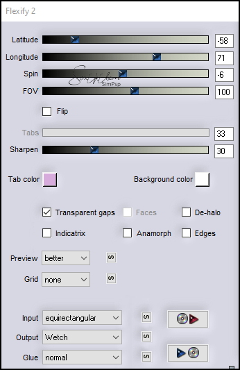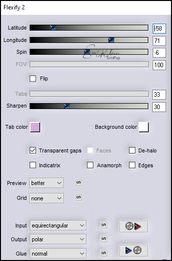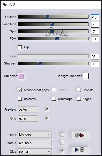 6 - Layers > Duplicate. Fechar a visibilidade da layer duplicada. Ativar a layer Merged. Effects > Plugins > Flaming Pear > Flexify2.