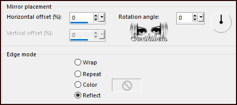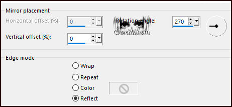 18 - Magic Wand: Tolerance: 0, Feather: 60%, clique na parte transparente desta layer. Edit > Cut por 5 vezes ou Delete no teclado por 5 vezes. Selections > Select None. Effects > Reflection Effects > Rotating Mirror.
