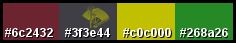 ROTEIRO: 1 – Abra o tube, duplique e feche o original. 2 – Aqui vamos trabalhar com 4 cores. Então anote as cores com que deseja trabalhar. Escolhi duas cores do tube e duas aleatórias que eu achei que iriam combinar: #6c2432, #3f3e44, #c0c000, #268a26.
