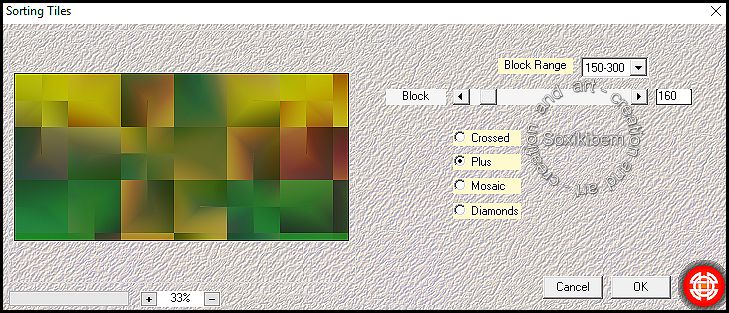 5 – Adjust > Blur > Gaussian Blur: 50. 6 – Plugin Mehdi > Sorting Tiles.