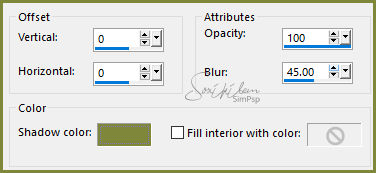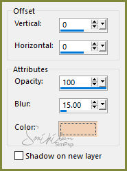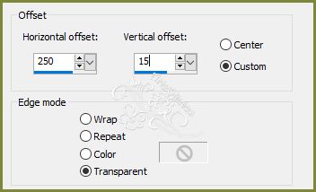35 - Copy no tube MR_Drmatic Dance e paste a new layer. Posicione a esquerda ou como preferir. 36 - Effects > 3D Effects > Drop Shadow: 0, 0, 100, 65 ou ao seu gosto. 37 - Finalize com uma bordinha de 1 px com a cor usada no foreground. 38 - Copy no tube brush_barra_de_texto_transparente e paste a new layer. 39 - Effects>Image Effects>Offset como no print.